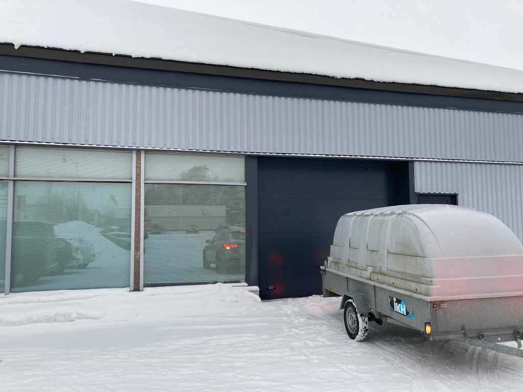 Automaattinen nosto-ovi sekä tilava parkkipaikka tavaroiden tuontiin ja vientiin.